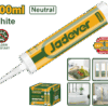 Silicona acética para sellar – blanco – capacidad: 300 ml – formación de piel: 5-10 min – tiempo de curado: 20h – referencia: 23℃ – 50% h.r.